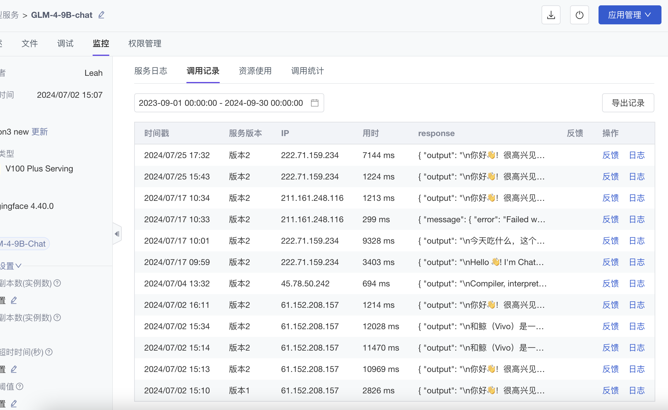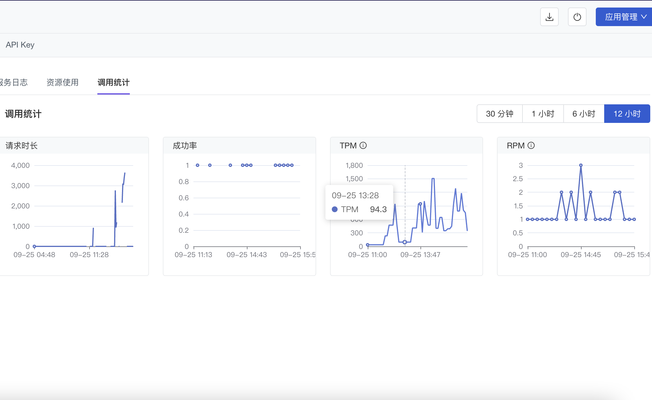 服务监控:新增记录 TPM 和 RPM 监控指标、调用记录回溯