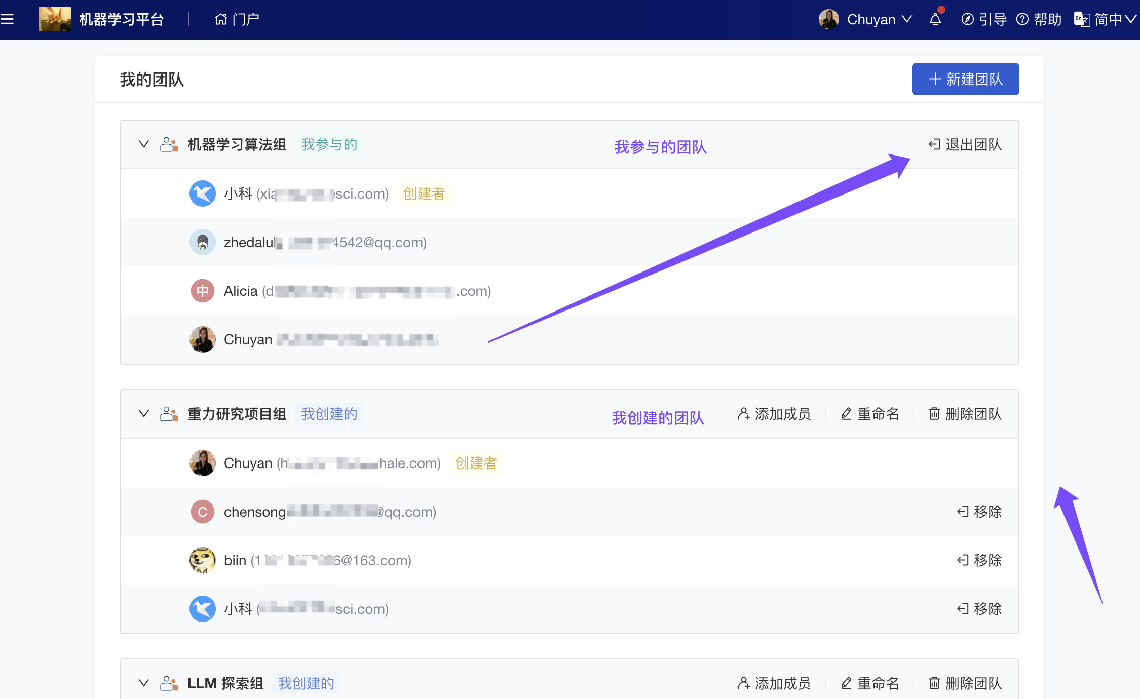 团队协作:新增 我的团队,适用于科研项目组管理、研究小组协同