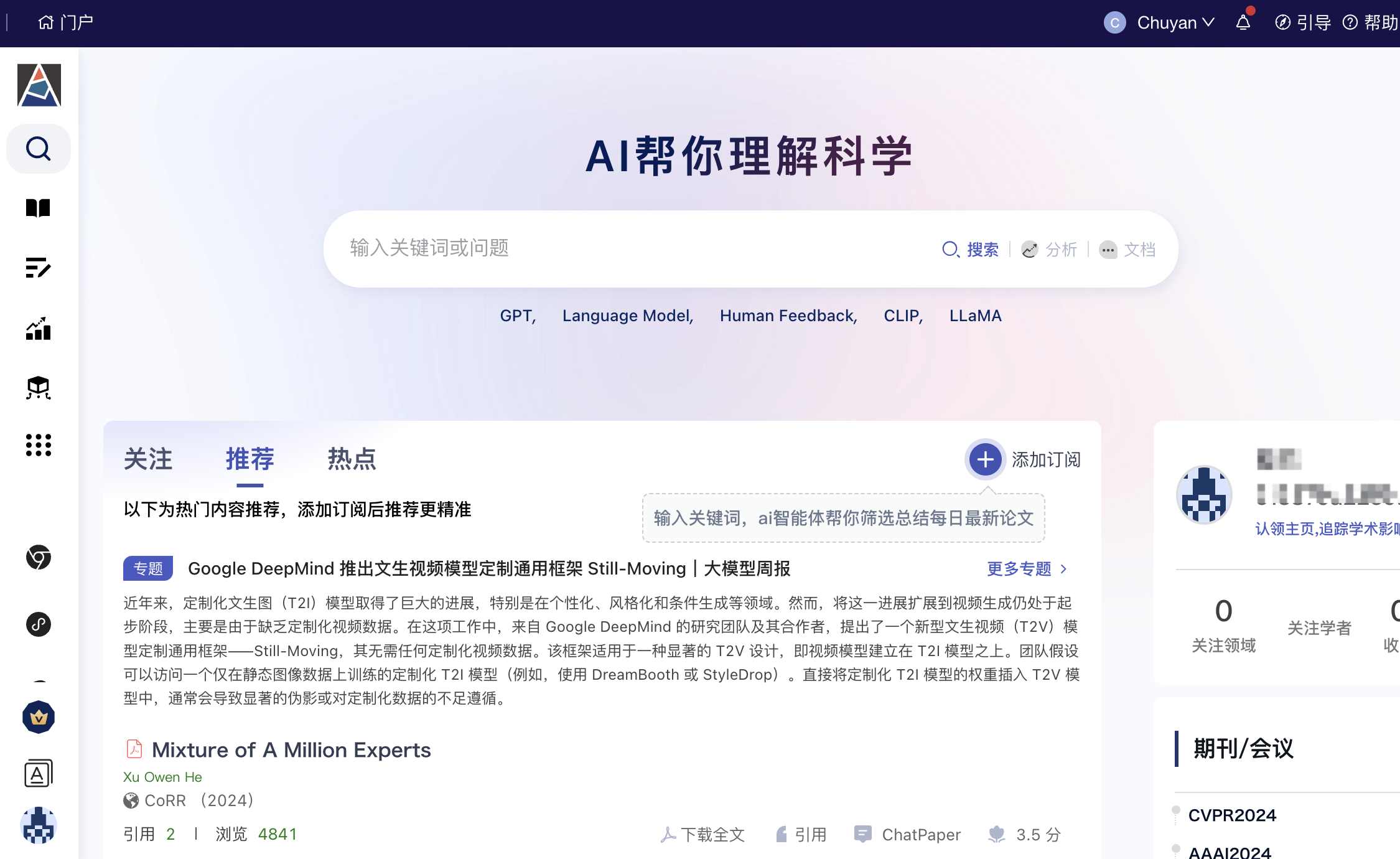 智能助手:新增 智谱平台接入,支持在 ModelWhale 使用 智谱 AMiner、AIWorkFlow
