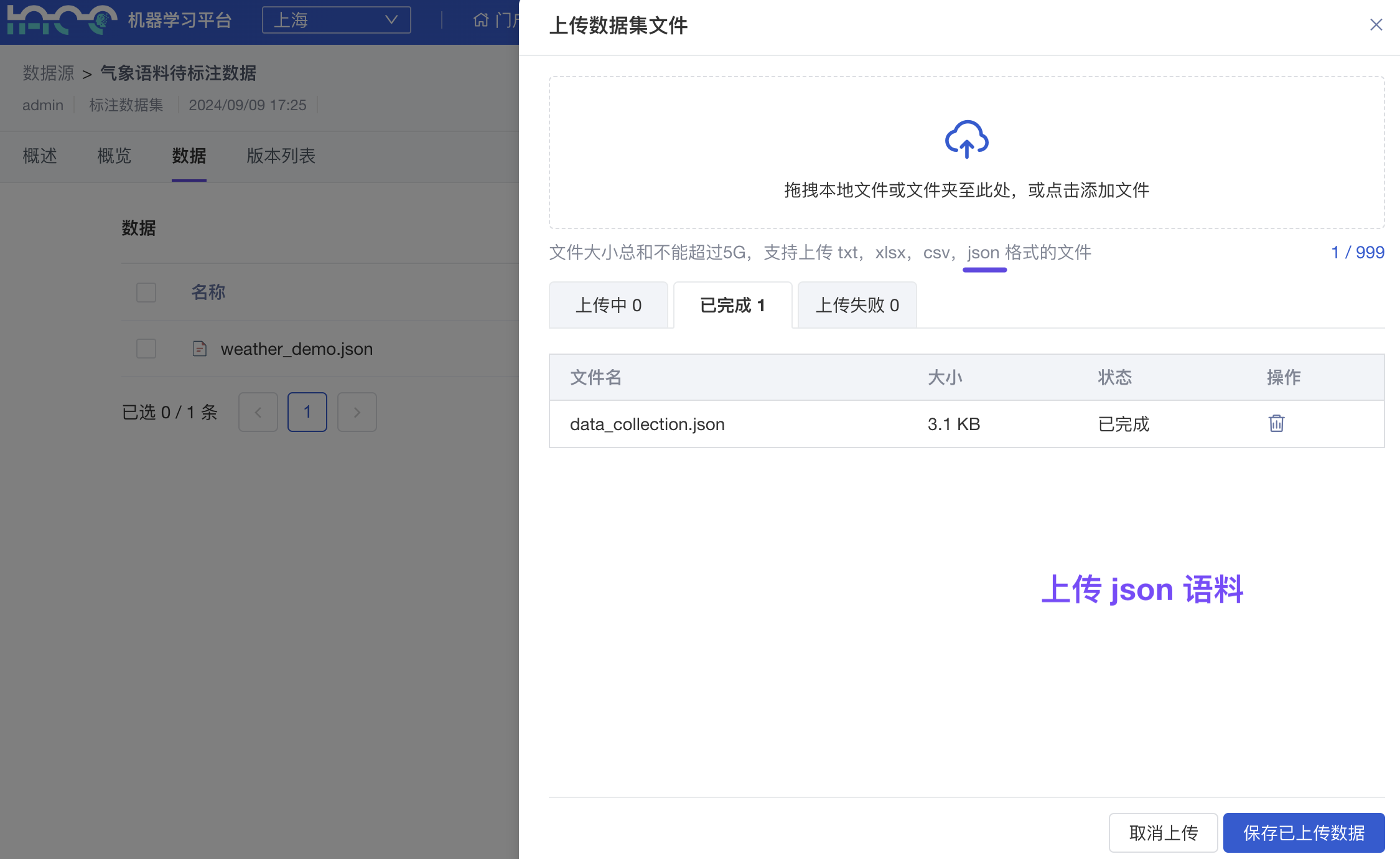 (3)待标注数据接入(文本标注):新增 支持解析 json 格式语料