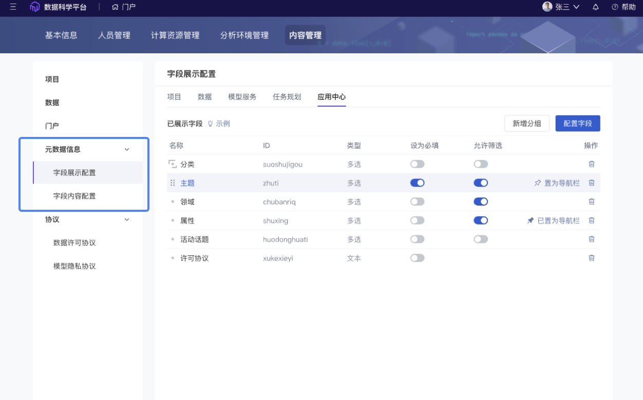 新增项目tab,支持编辑展示字段