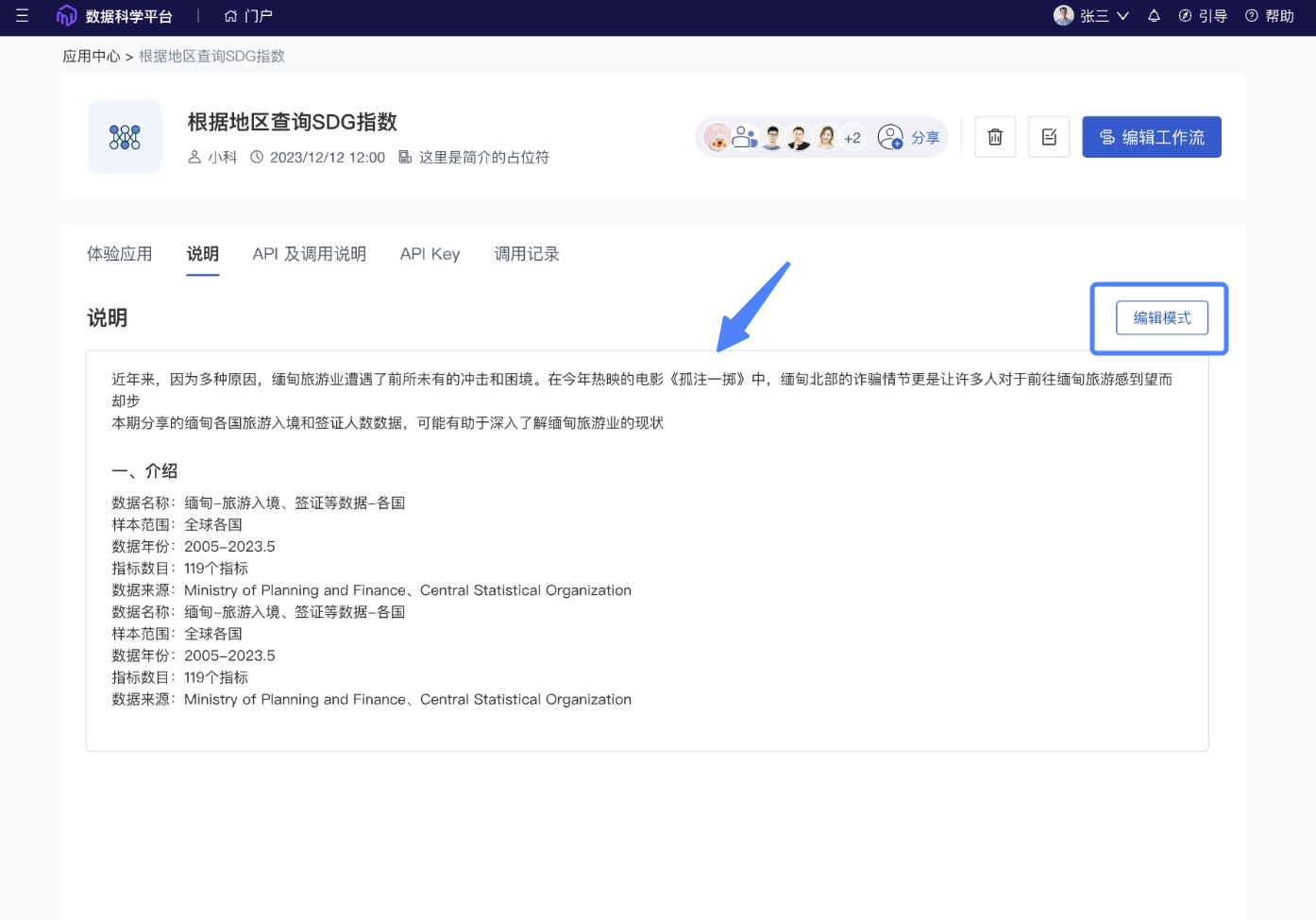 使用:使用者可根据作者发布信息,通过交互界面直接使用应用,或通过API调用。当通过交互界面使用,支持执行展示过程。